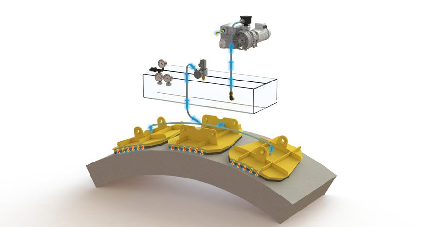 - Lastvielfalt: Die Vakuumklemmung ermöglicht das effektive Heben von Beton, Rohren, Platten und Brammen.